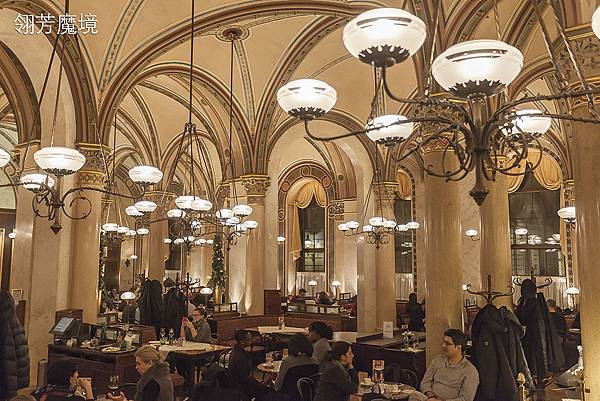 中央咖啡館其實非常建議寒冷的時節到來,尤其接近耶誕前夕,整個咖啡館外觀以華麗燈泡妝點得非常有氣氛,剛好這段時間也是維也納老城最有耶誕氣氛的時間,整條大街都是耶誕樹及耶誕集市及燈光,尤其在夜晚,寒冷潮濕的冬夜裡,躲進中央咖啡館,映入眼簾整個暖色調的金黃,讓身心都溫暖了起來。