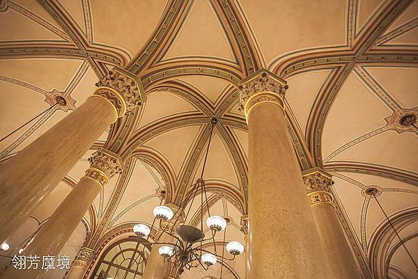 滿眼的華麗拱柱及古典吊燈,暖色的視覺讓身心都暖和起來
