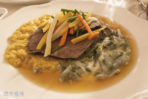 餐食部分翎芳老師點了兩樣,一個是C′afe Central Tafelspit ,一份則是C′afe Central Toast;Tafelspit是維也納傳統料理之一,而且非常有名,中央咖啡的Tafelspit採用的是快速的套餐方式,但正統的Tafelspit則是麻煩許多,而且有三道程序的吃法,這料理的正確品嘗方式,我們在寫到維也納名店Pichus時會提到。