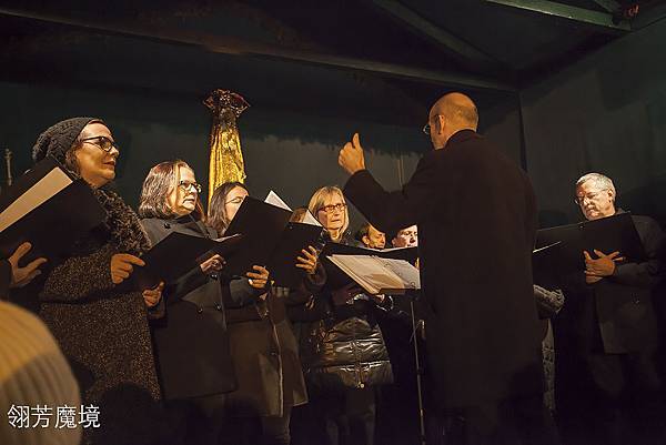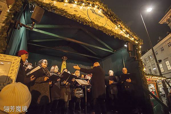 來到Altwiener Christkindlmarket時,正巧趕上居民自組的唱詩班在廣場的舞台上吟唱耶誕禮贊的詩歌,舞台前聚集了大量的遊客及居民,最後的高潮在於現場的大合唱,當然我們聽不懂德文,也沒辦法跟著大家合唱,所以就錄下了現場的錄音,尤其在今天這耶誕夜,聽了更有氣氛。