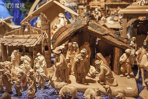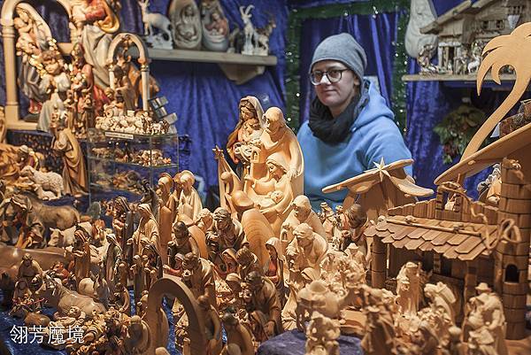 Altwiener Christkindlmarket的規模不大,大部分也是當地的居民出來擺攤,所以可選擇的商品不會太多,其中有個攤子挺有趣,當地朋友跟我說,這些木刻的擺件都是為了耶誕夜而製作的,比如說,你可以選擇耶穌誕生在馬廄的場景,每天都來買個構成場景的小擺件,等到耶誕夜當天,正好把整個場景組合而成,這種保留傳統木刻擺件的習俗真是有趣。