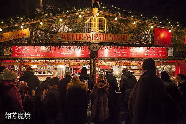 Rathaus聖誕集市範圍就比Altwiener Christkindlmarket大多了,徒步在這裡要一家家攤販逛完可能也得二個小時左右,所以,販售當地最棒的法棍夾維也納熱狗的攤商運應而生,這種熱狗非常好吃,煎得香氣十足的維也納香腸,外皮的膜衣一咬就破,裡面的芝士濃濃的噴漿,再加上稍有硬度具有咬勁的中空法棍,香腸夾在其中,一口下去簡直逆天的好吃!強烈推薦大家到維也納,不要錯過這可愛好吃的小點喔。
