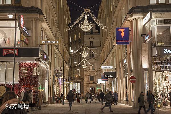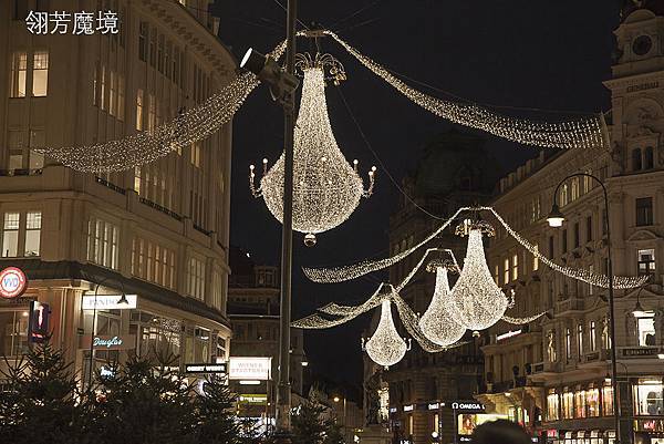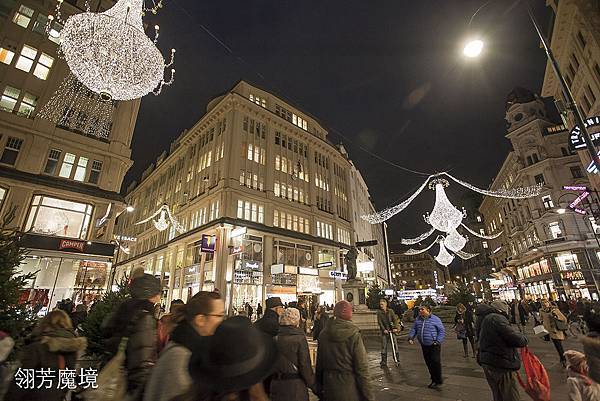 如果,你不想跟著人潮在市集里擁擠的話,其實老城區也是滿滿的耶誕氣息,從史蒂芬大教堂前面一條的購物大街,裝飾了各種花樣的燈飾、聖誕氣氛的櫥窗以及街頭藝人,可以說,是整個維也納最棒的風景。