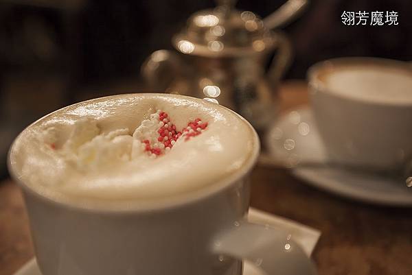 到Demel除了品嘗甜點外,當然也不要錯過咖啡,這裡要推薦的是一款也是Demel獨家的咖啡,那就是Anna Demel Kaffee,這款咖啡蠻特別,是帶酒味的甜咖啡,基底是苦味espresso,但是裡面加了橘子味的利口酒及牛奶,牛奶上再加了大量的生奶油,奶油上灑了一些白色及紅色的糖粒,這就是店家自豪的獨家安娜咖啡。